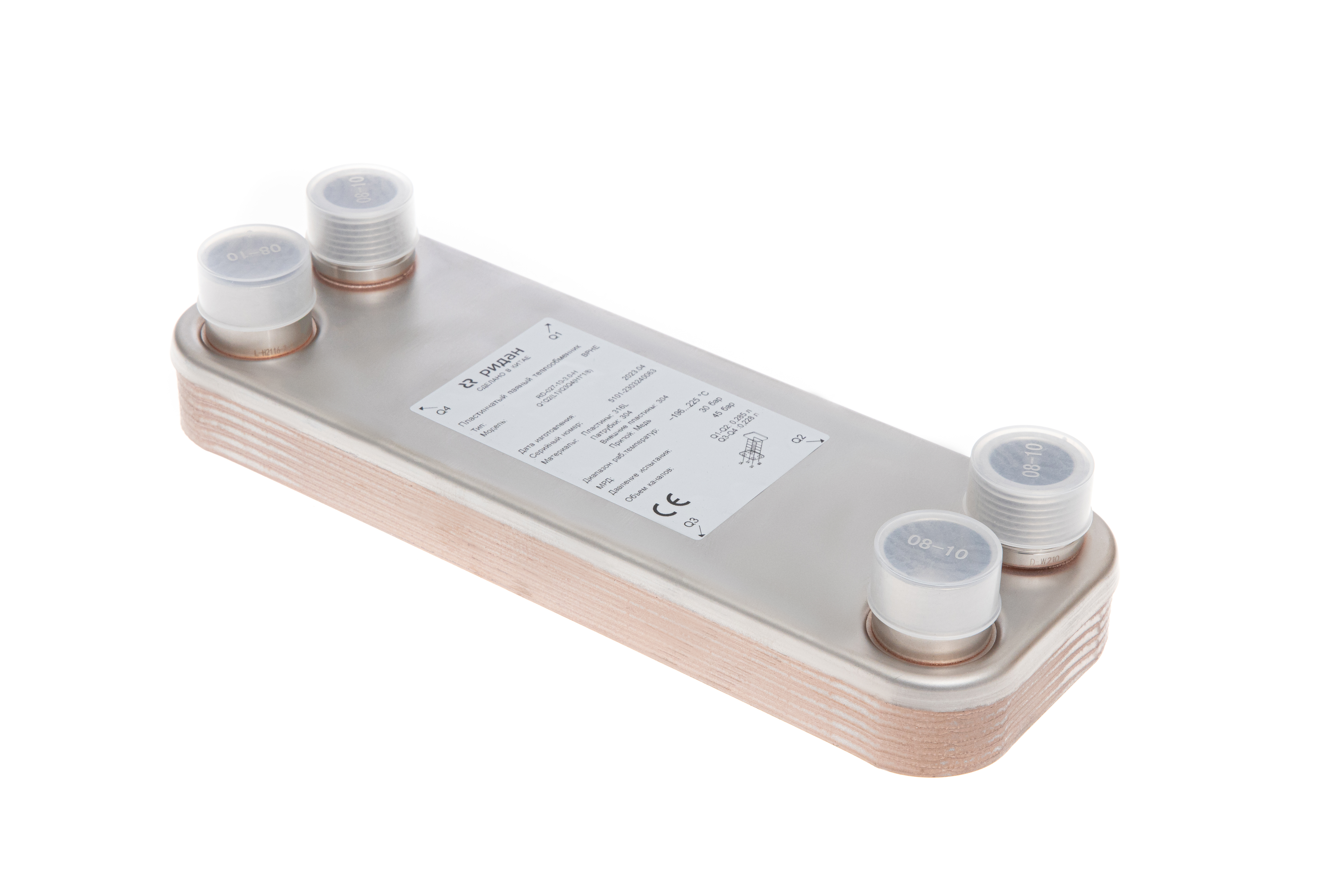Ридан 021B8729R — Теплообменник пластинчатый паяный BPHE_RD-027-32-3,0-H, присоединительный штуцер Q1/Q2 — L1, Q3/Q4 — H1"1/8