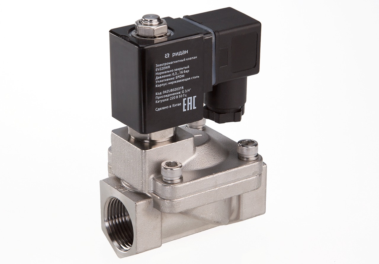 Ридан 042U805031R — Клапан электромагнитный EV220WR, присоединение G 2, материал уплотнения EPDM, нормально закрытый, 0,3…16 бар, с катушкой 220 В, 50 Гц