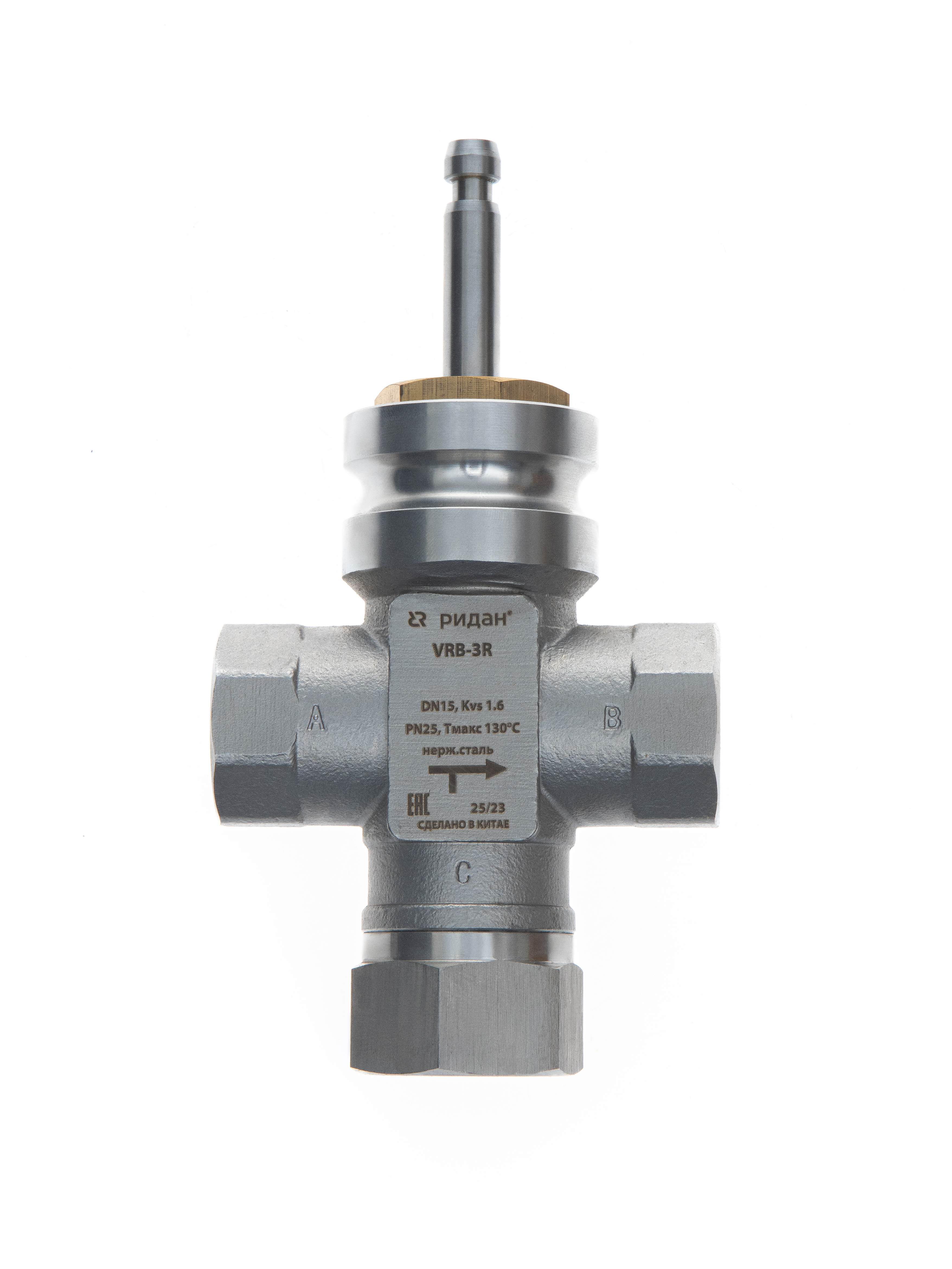 Ридан 065Z0211R — Клапан регулирующий с внутренней резьбой VRB-3R PN25, DN15, Kvs 0,63 м³/ч, трехходовой, седельный, внутренняя резьба, нержавеющая сталь