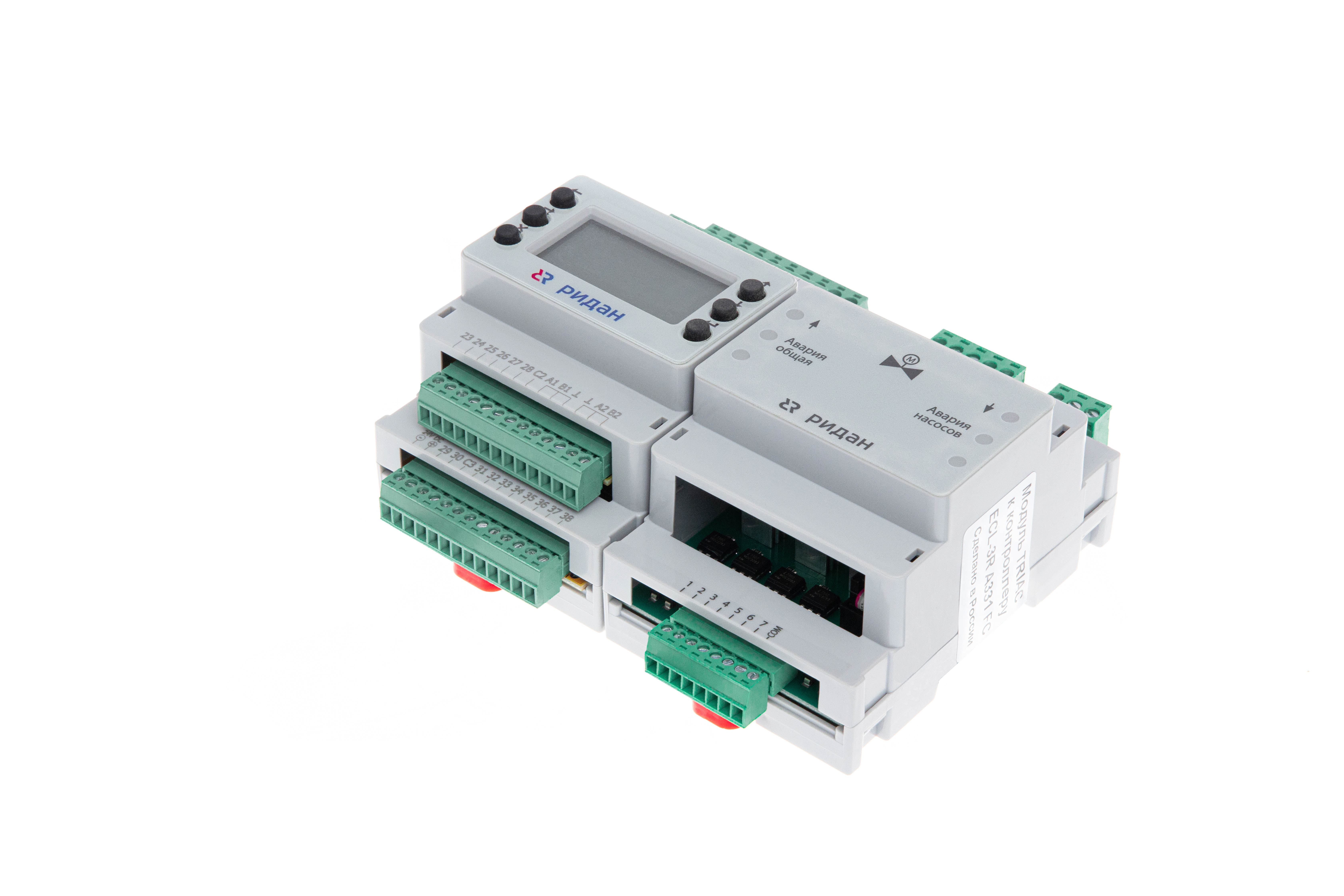 В комплект поставки ECL-3R 331 FC входит модуль расширения с твердотельными реле ECL-3R Triac, подключаемый к транзисторным выходам контроллера через прилагаемый кабель.