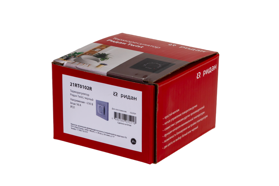 Ridan 21RT1015R — Розничный комплект для теплого пола: нагревательный мат Ridan TF-150 0,5 м² с терморегулятором Ridan Twist (черный)