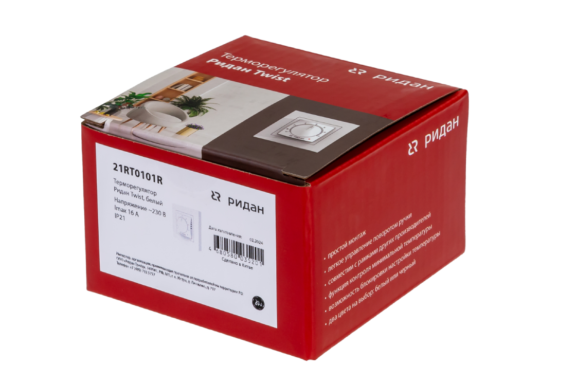 Ridan 21RT1072R — Розничный комплект для теплого пола: нагревательный мат Ridan TF-200 9 м² с терморегулятором Ridan Twist (белый)